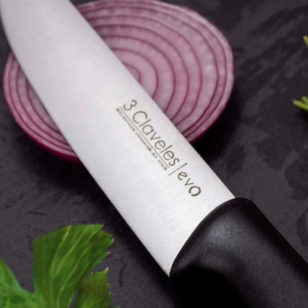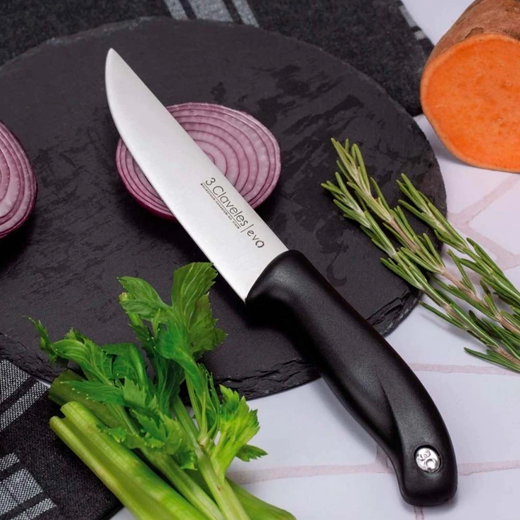 Preciso, liviano y funcional. El Cuchillo de Cocina Evo de 3 Claveles está pensado para quienes buscan rendimiento profesional en el día a día. Su hoja ancha de acero inoxidable con filo liso garantiza cortes limpios y controlados, ideal para verduras, frutas y tareas de preparación fina.