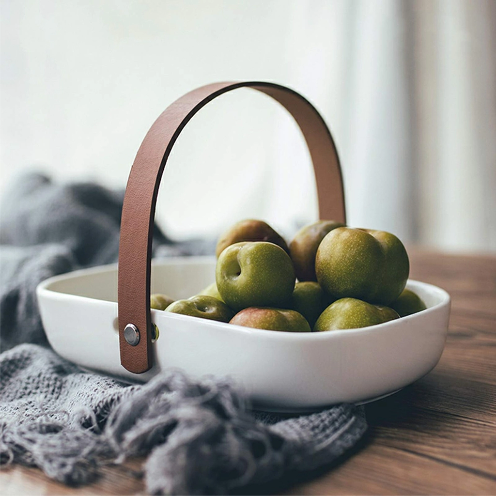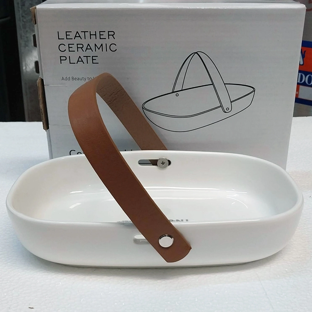 Diseño moderno, funcional y con un toque natural. La bandeja de porcelana ZXCVBNAS combina elegancia minimalista con detalles cálidos gracias a su asa de cuero sintético, ideal para servir frutas, panificados o decorar cualquier ambiente.